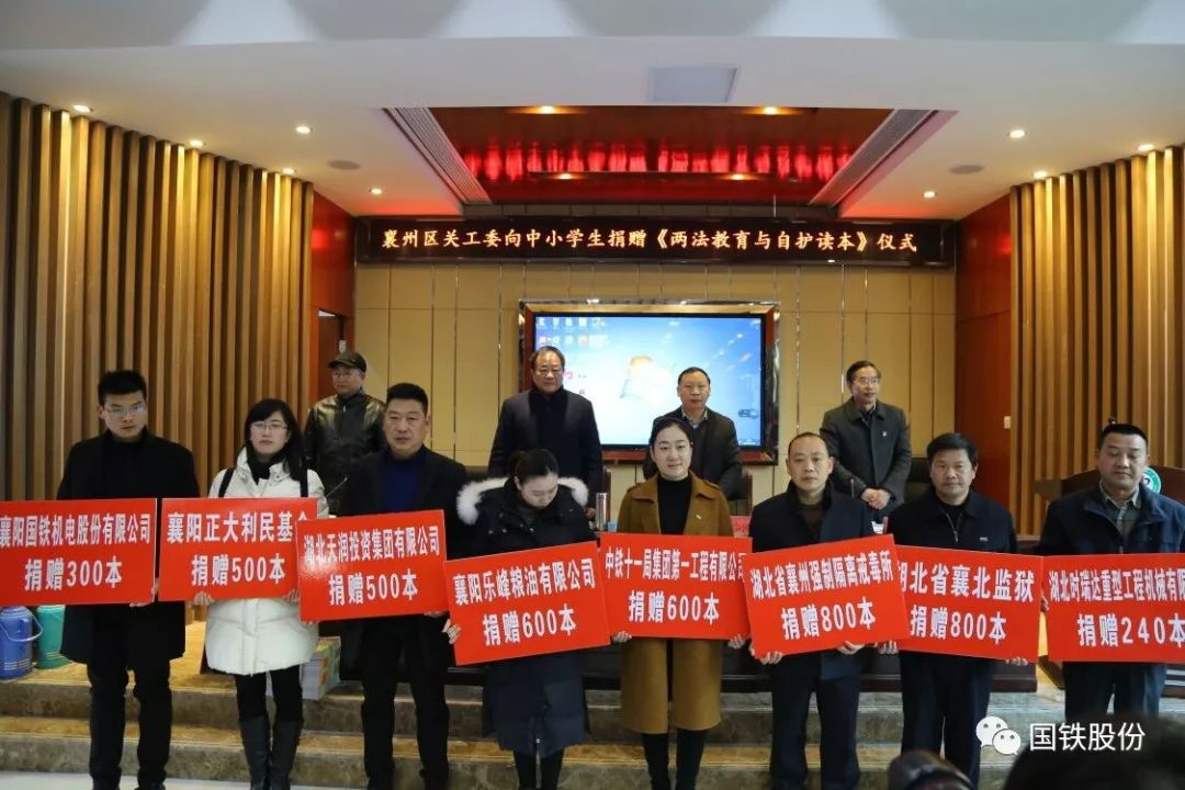 12月19日,襄州區(qū)關(guān)工委向中小學(xué)生捐贈(zèng)《兩法教育與自護(hù)讀本》儀式在張灣中心學(xué)校舉行。在區(qū)關(guān)工委的倡議下,襄陽(yáng)國(guó)鐵積極響應(yīng),向中小學(xué)生捐贈(zèng)圖書(shū)300本。